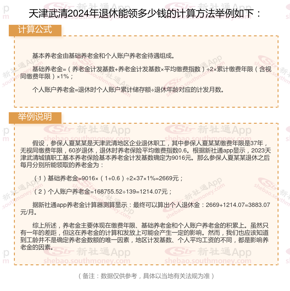 天津武清退休工资养老金计算方法及公式2024年最新(举例说明)