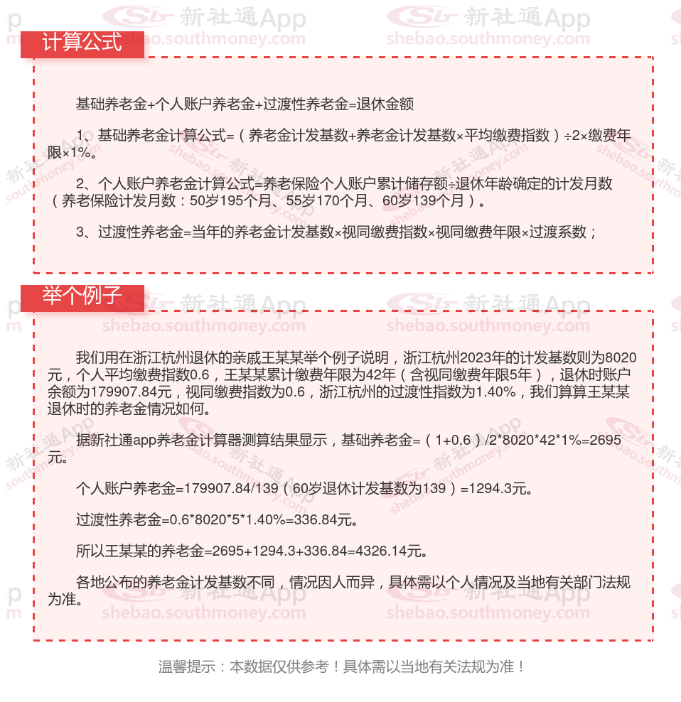浙江杭州退休工资养老金计算方法及公式2024年最新(举例说明)