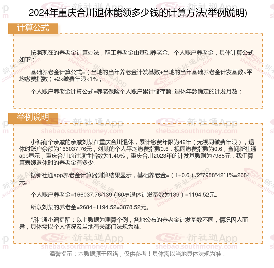 重庆合川退休工资养老金计算方法及公式2024年最新(举例说明)