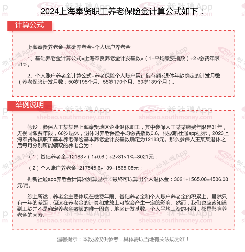 上海奉贤退休工资养老金计算方法及公式2024年最新(举例说明)