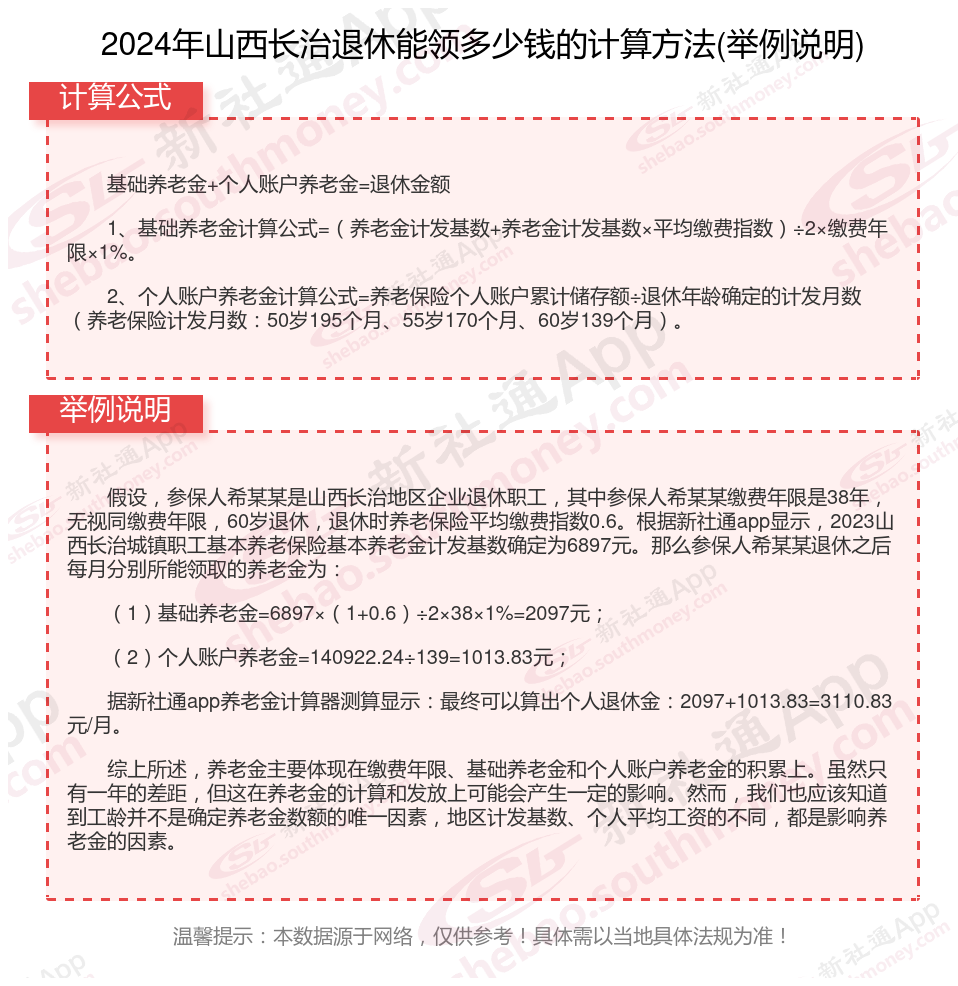 山西长治退休工资养老金计算方法及公式2024年最新(举例说明)