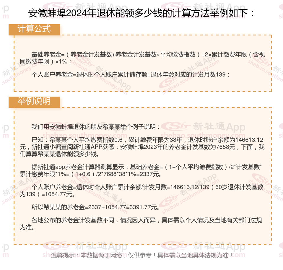 安徽蚌埠退休工资养老金计算方法及公式2024年最新(举例说明)