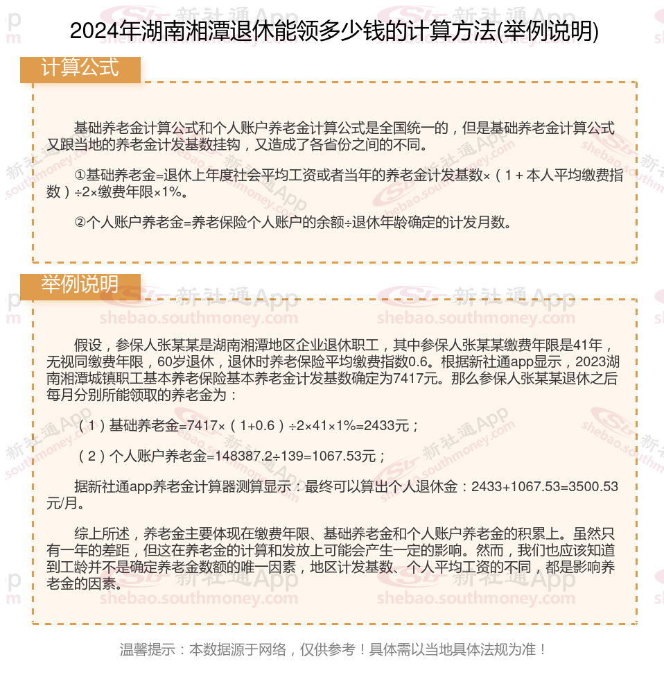 湖南湘潭退休工资养老金计算方法及公式2024年最新(举例说明)
