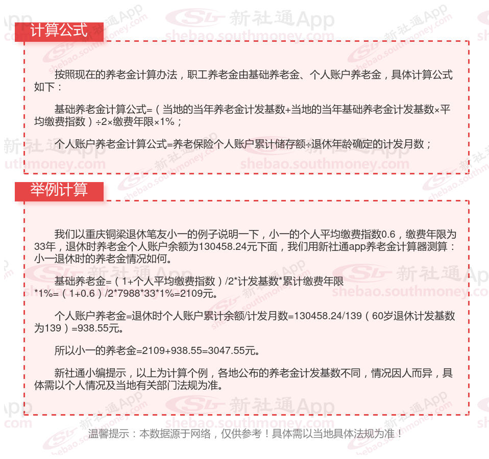 重庆铜梁退休工资养老金计算方法及公式2024年最新(举例说明)