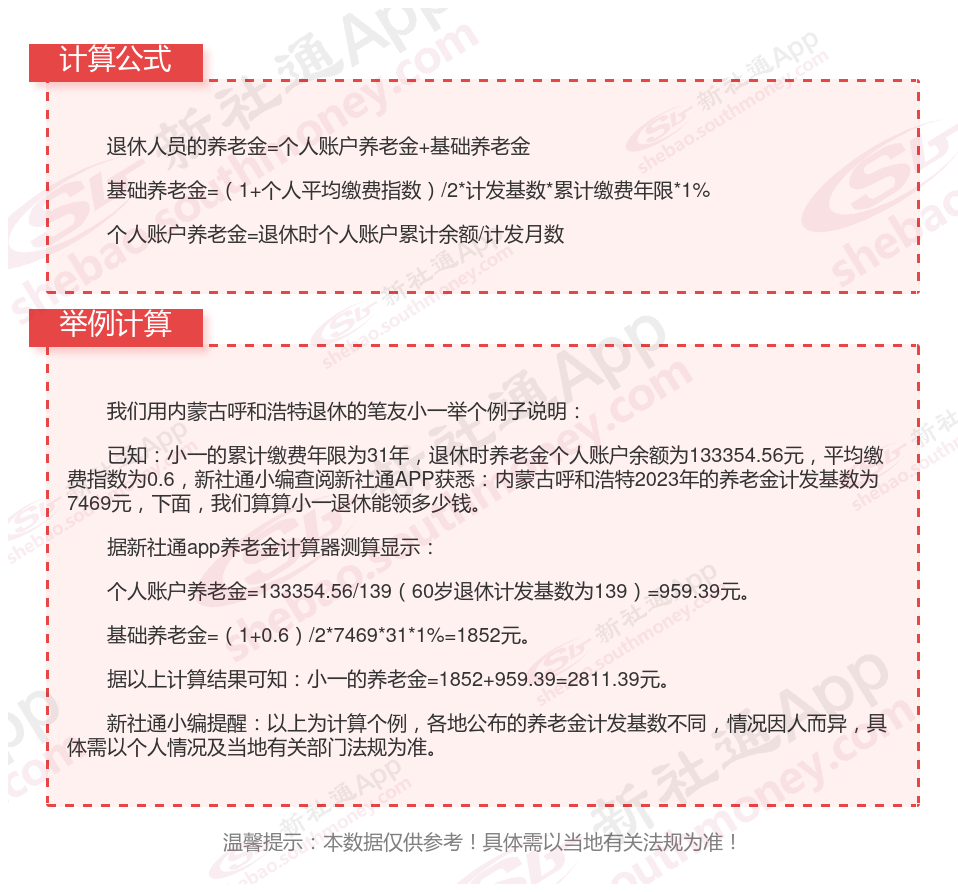 内蒙古呼和浩特退休工资养老金计算方法及公式2024年最新(举例说明)
