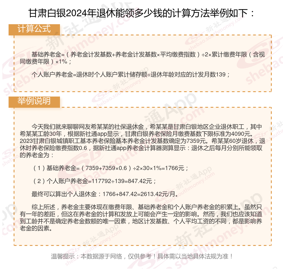甘肃白银退休工资养老金计算方法及公式2024年最新(举例说明)