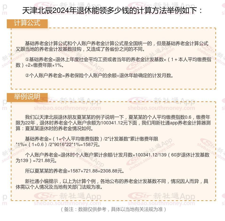 天津北辰退休工资养老金计算方法及公式2024年最新(举例说明)