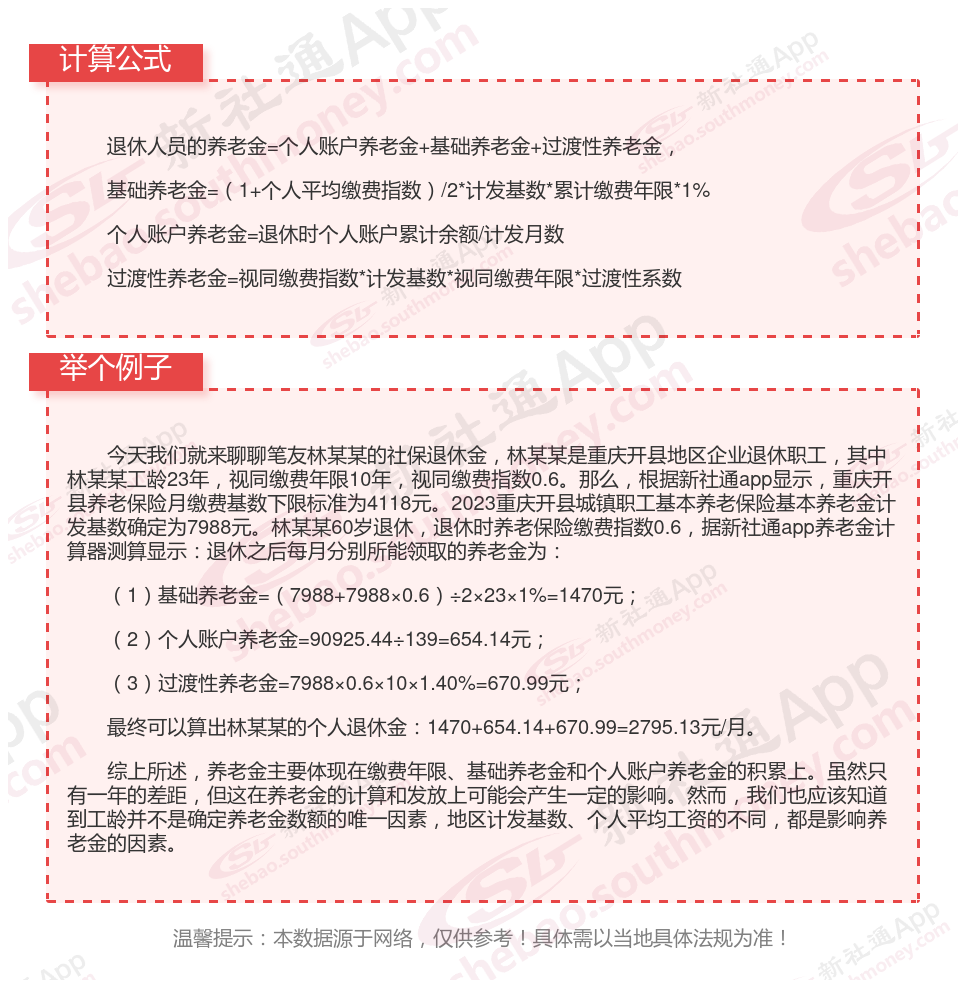 重庆开县退休工资养老金计算方法及公式2024年最新(举例说明)