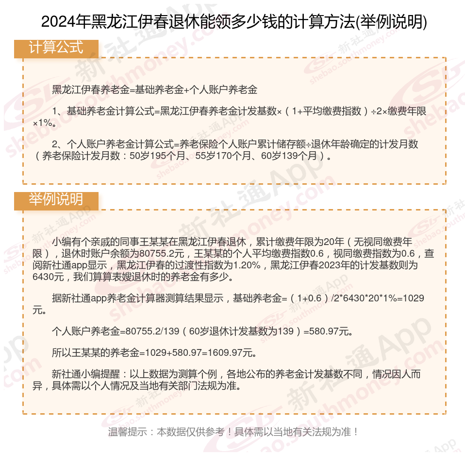 黑龙江伊春退休工资养老金计算方法及公式2024年最新(举例说明)