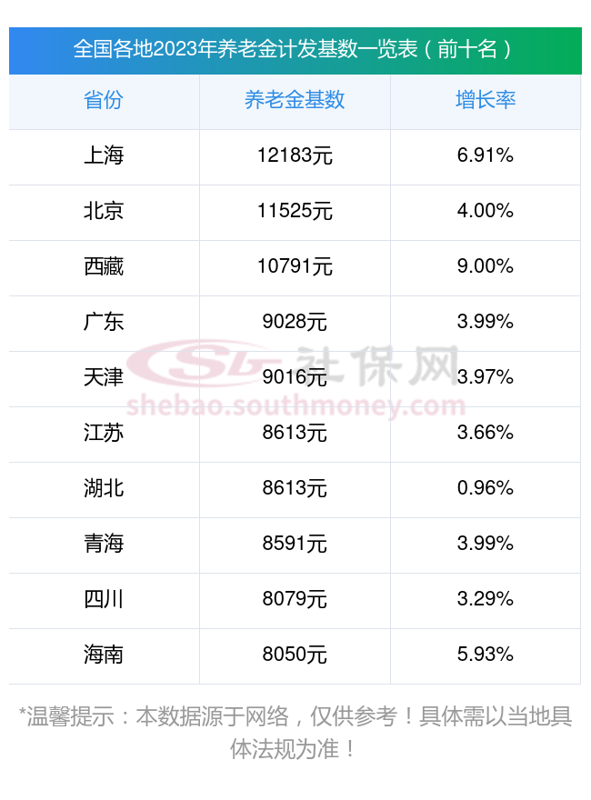 全国2023年养老金计发基数排名前十的城市,看看有你的城市吗?在这里简单分享一下: