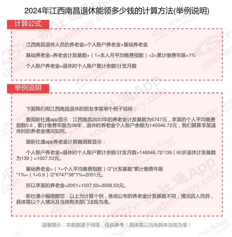 江西南昌退休工资养老金计算方法及公式2024年最新(举例说明)