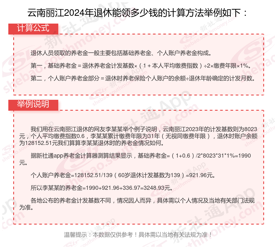 云南丽江退休工资养老金计算方法及公式2024年最新(举例说明)