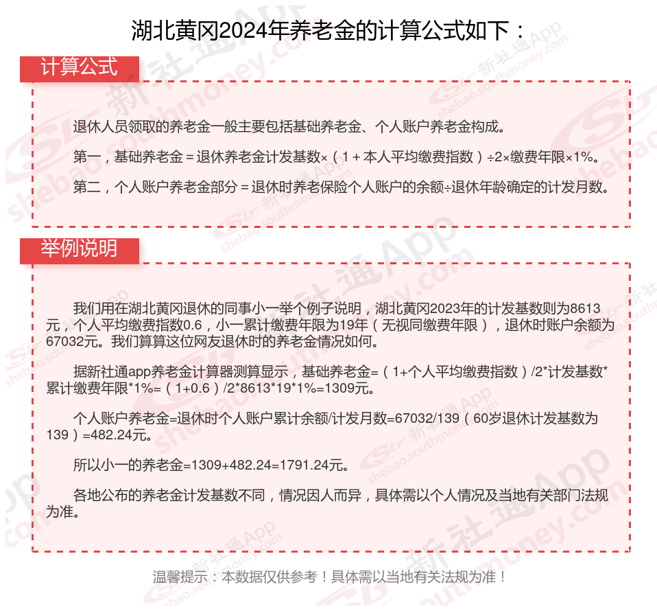 湖北黄冈退休工资养老金计算方法及公式2024年最新(举例说明)