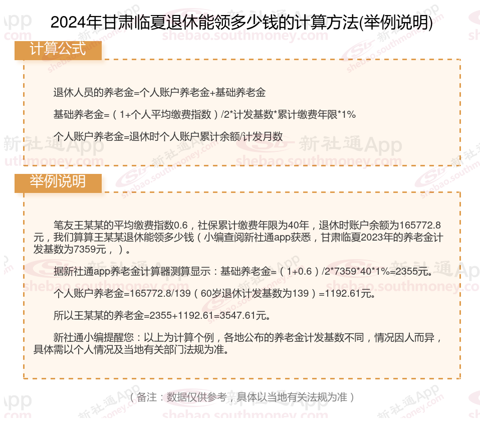甘肃临夏退休工资养老金计算方法及公式2024年最新(举例说明)