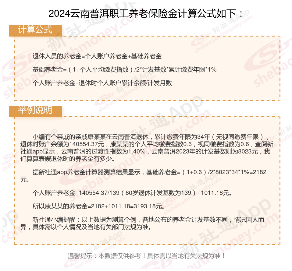 云南普洱退休工资养老金计算方法及公式2024年最新(举例说明)