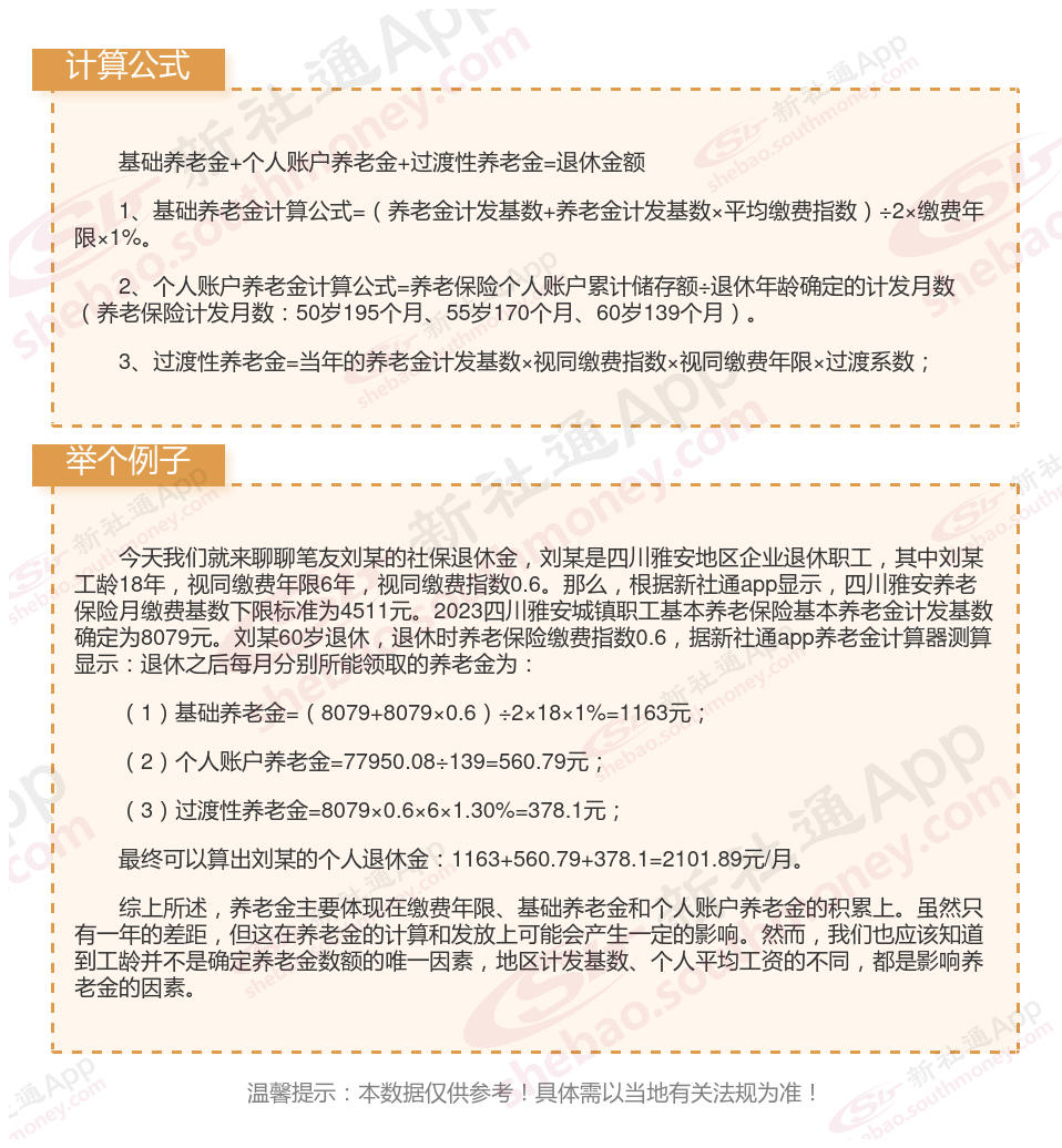 四川雅安退休工资养老金计算方法及公式2024年最新(举例说明)