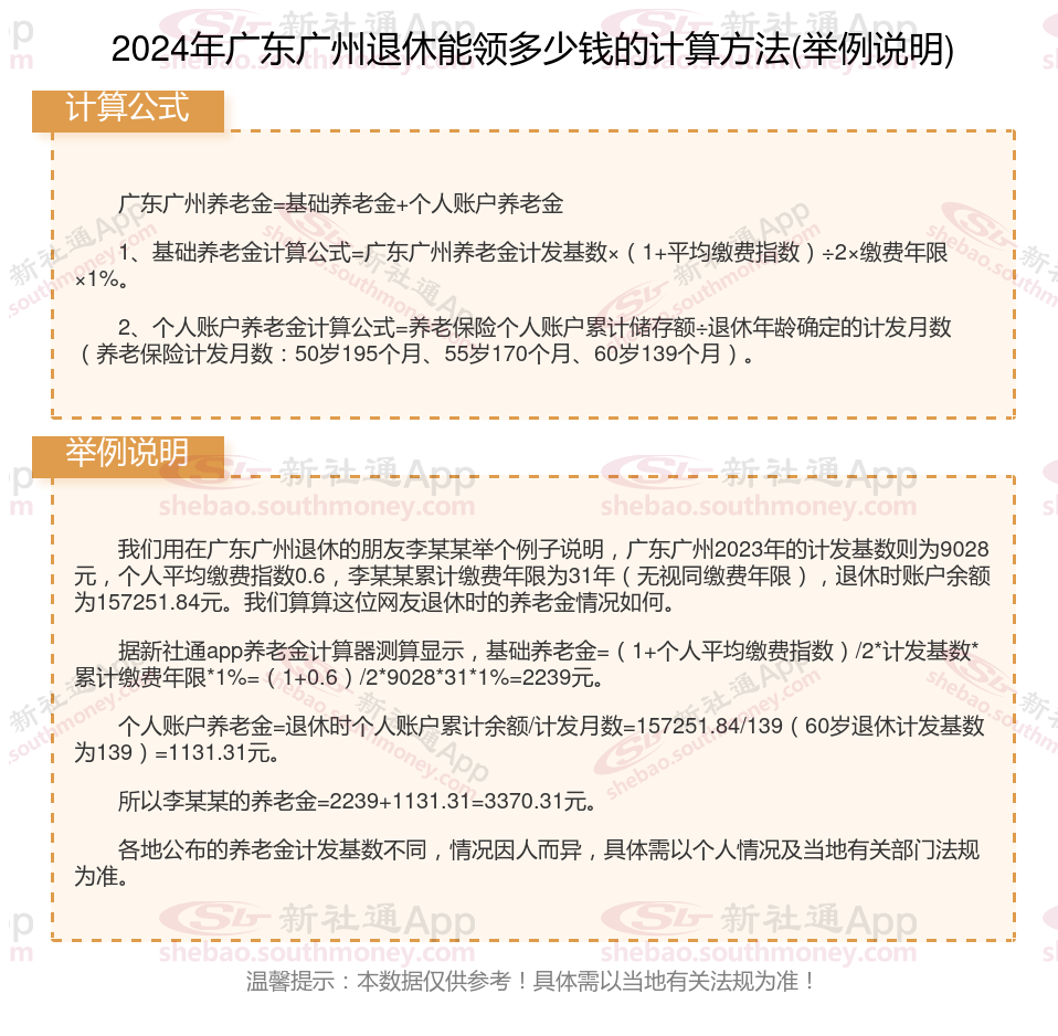 广东广州退休工资养老金计算方法及公式2024年最新(举例说明)
