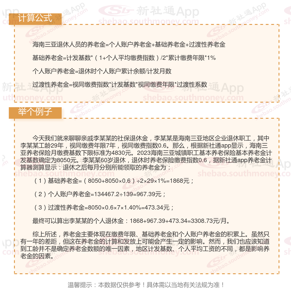 海南三亚退休工资养老金计算方法及公式2024年最新(举例说明)