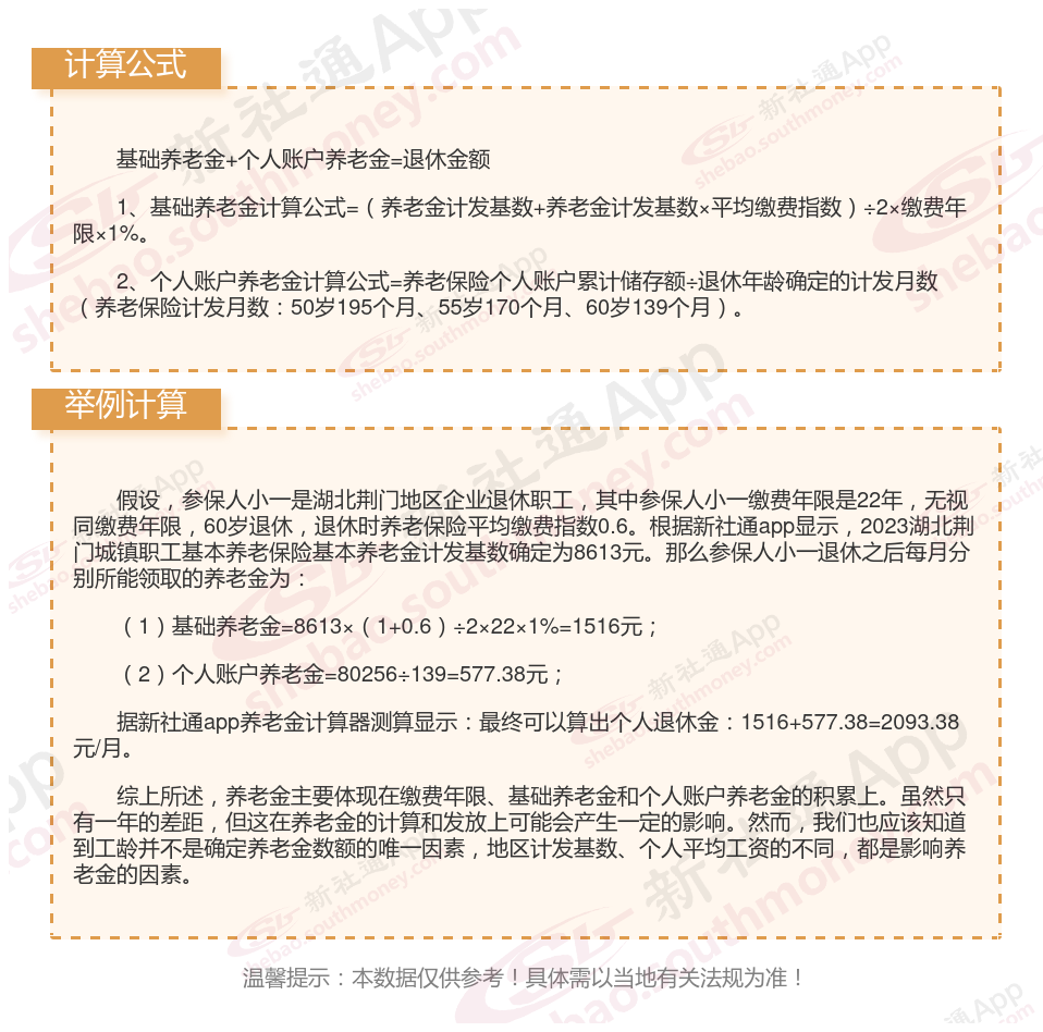 湖北荆门退休工资养老金计算方法及公式2024年最新(举例说明)