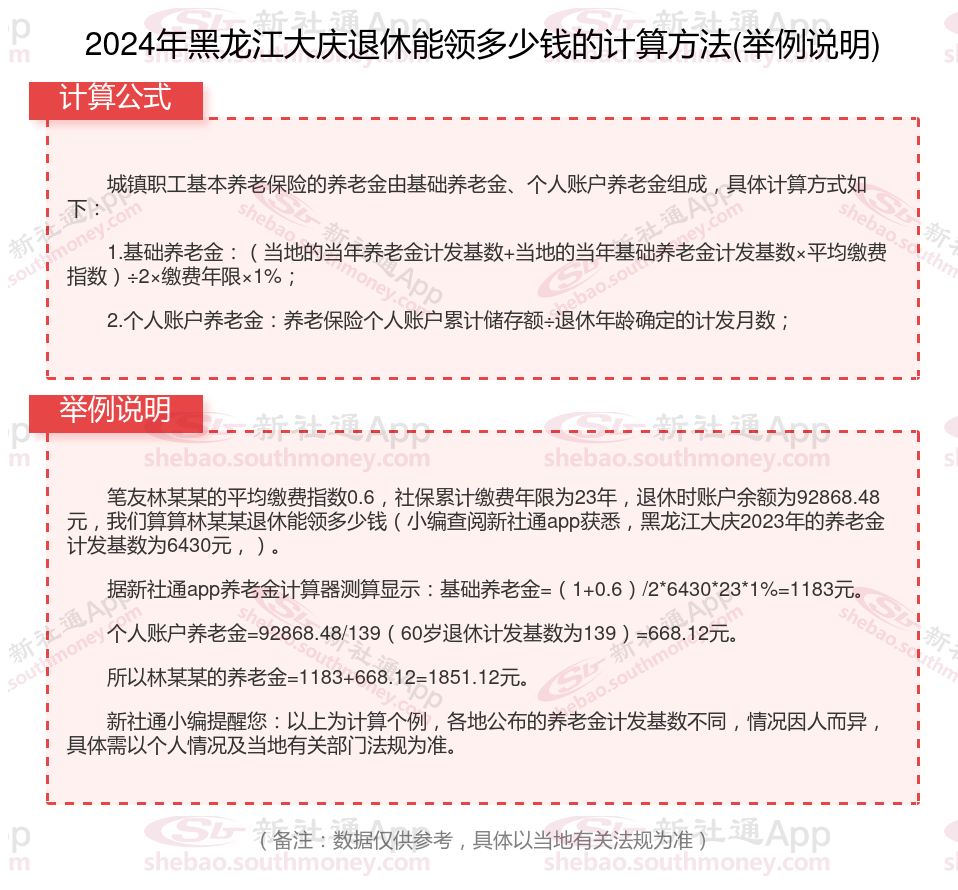 黑龙江大庆退休工资养老金计算方法及公式2024年最新(举例说明)