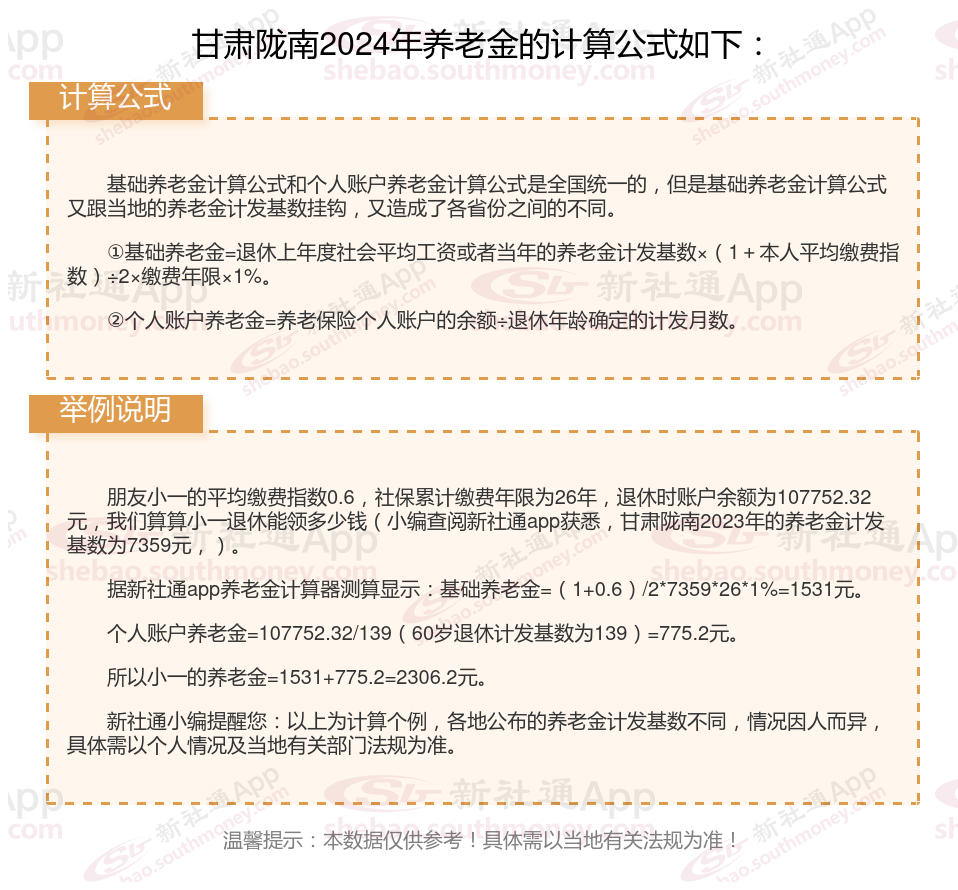 甘肃陇南退休工资养老金计算方法及公式2024年最新(举例说明)