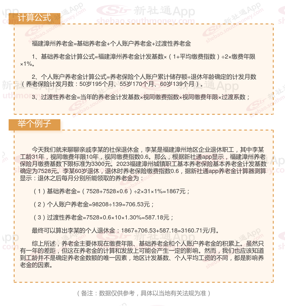 福建漳州退休工资养老金计算方法及公式2024年最新(举例说明)