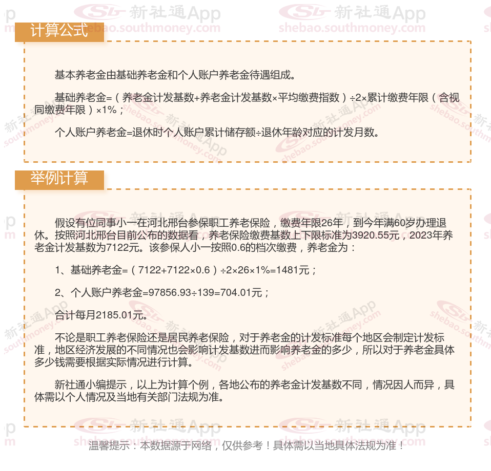 河北邢台退休工资养老金计算方法及公式2024年最新(举例说明)