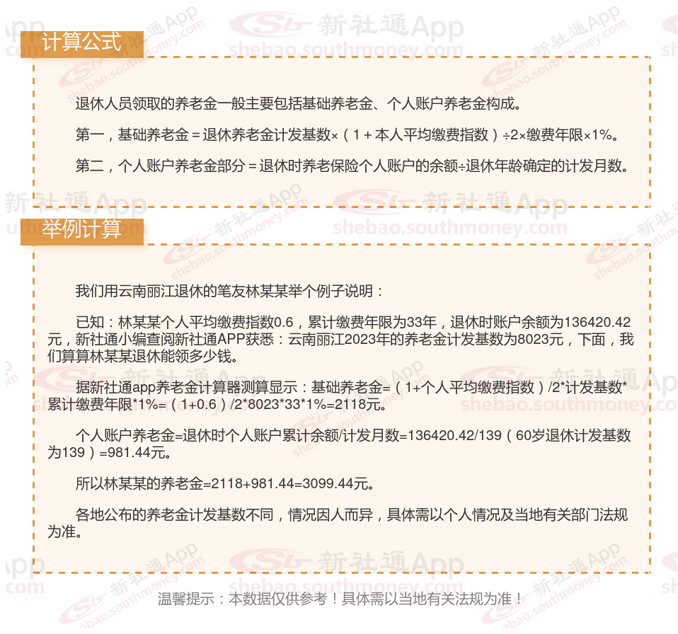 云南丽江退休工资养老金计算方法及公式2024年最新(举例说明)