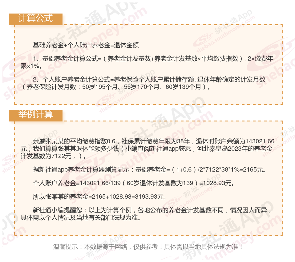河北秦皇岛退休工资养老金计算方法及公式2024年最新(举例说明)