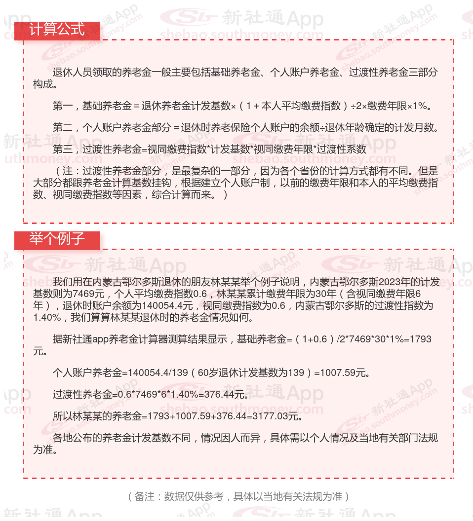 内蒙古鄂尔多斯退休工资养老金计算方法及公式2024年最新(举例说明)