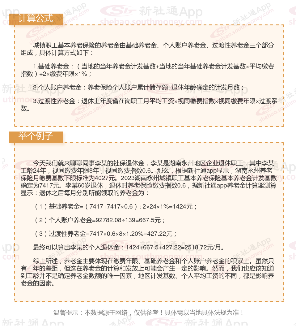 湖南永州退休工资养老金计算方法及公式2024年最新(举例说明)