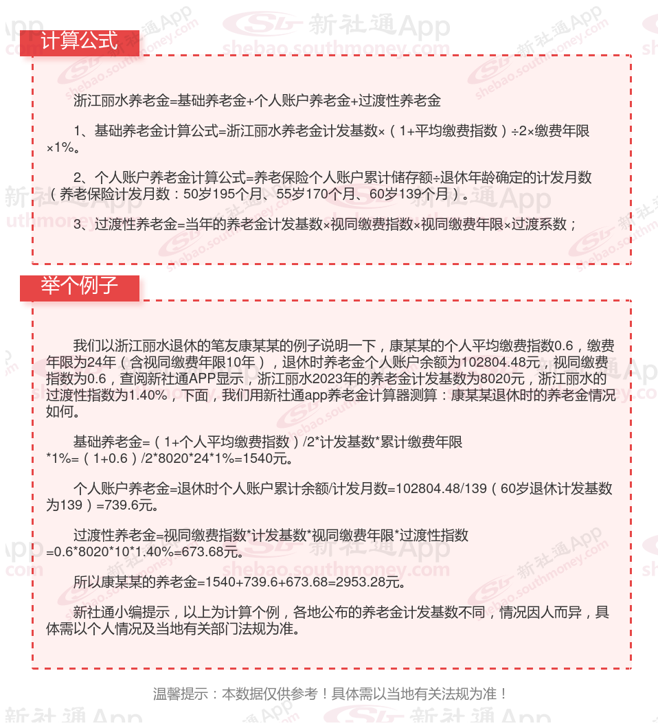 浙江丽水退休工资养老金计算方法及公式2024年最新(举例说明)