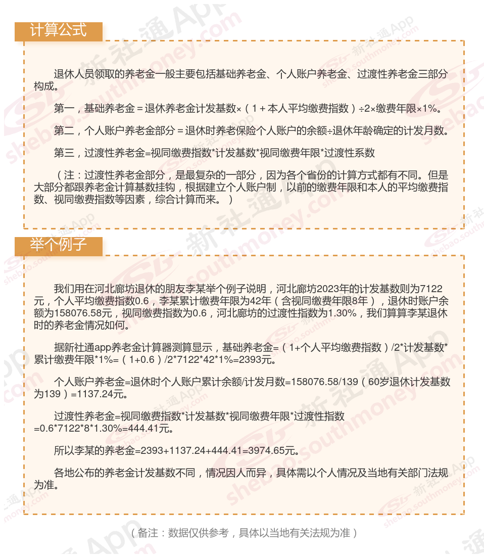 河北廊坊退休工资养老金计算方法及公式2024年最新(举例说明)