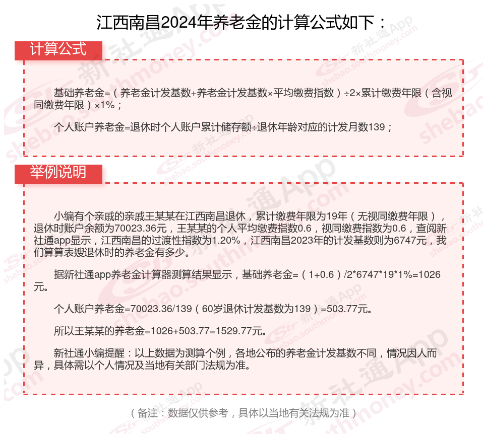 江西南昌退休工资养老金计算方法及公式2024年最新(举例说明)