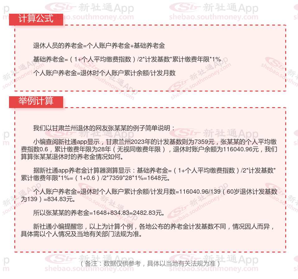 甘肃兰州退休工资养老金计算方法及公式2024年最新(举例说明)