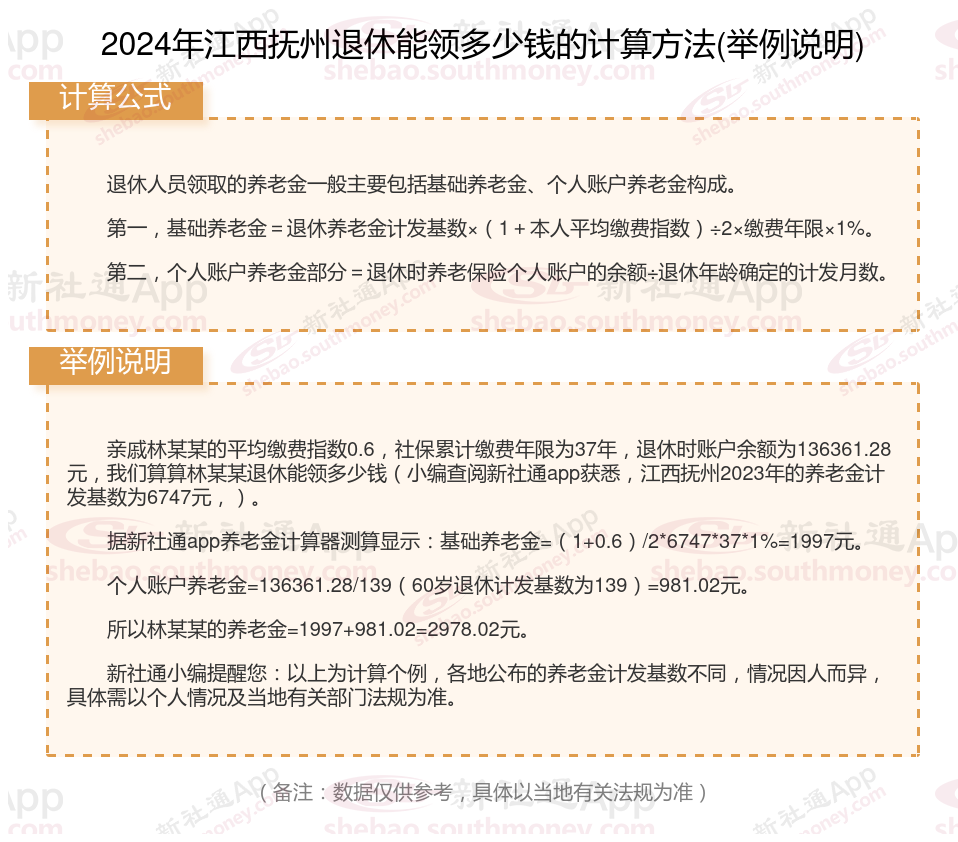 江西抚州退休工资养老金计算方法及公式2024年最新(举例说明)