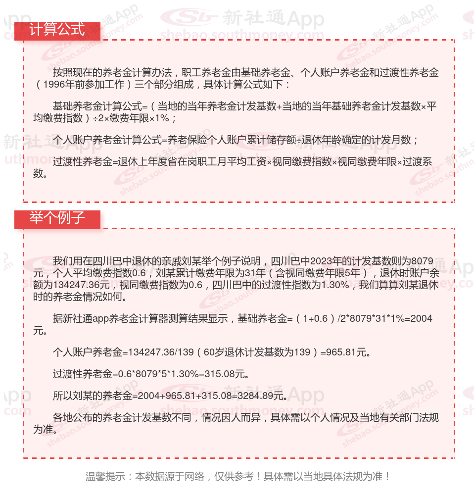四川巴中退休工资养老金计算方法及公式2024年最新(举例说明)