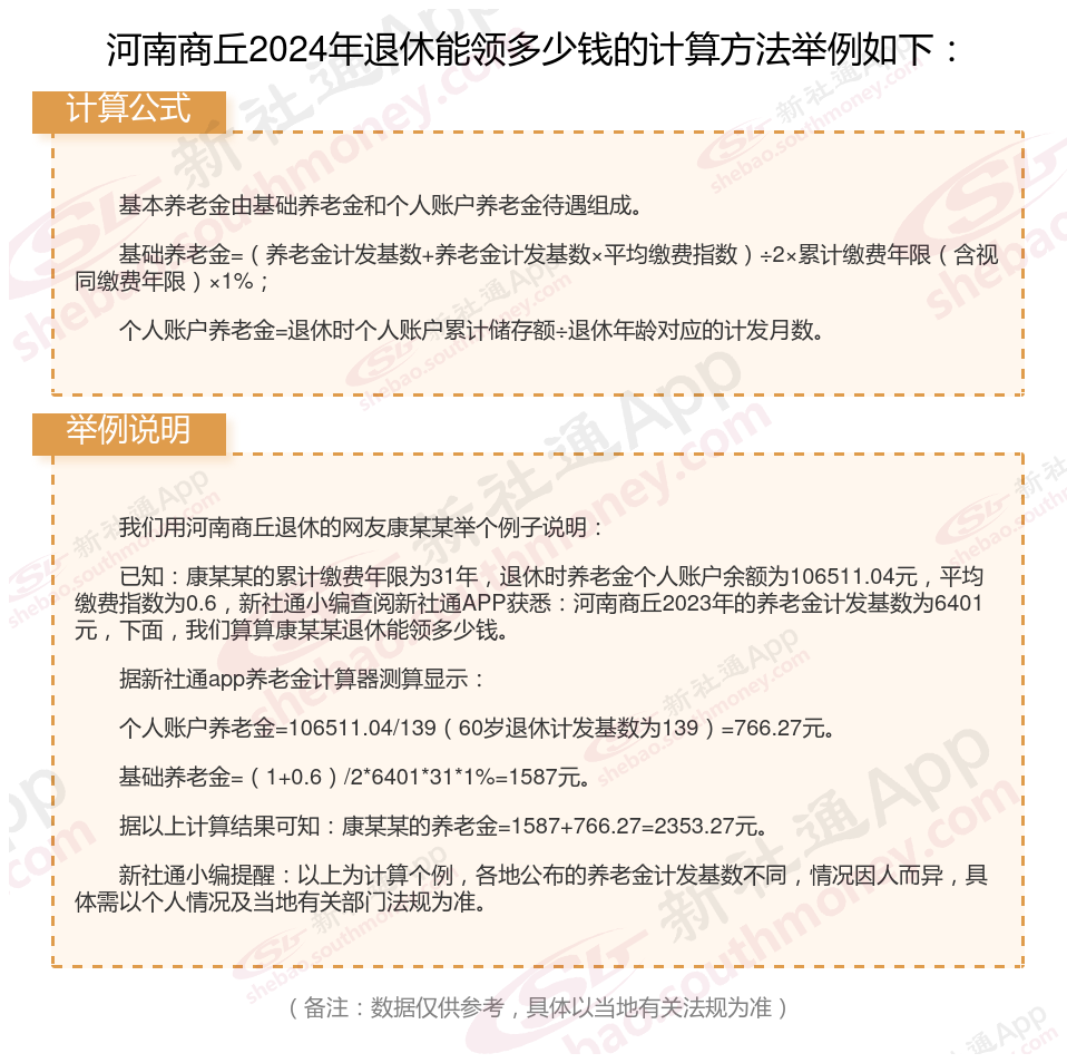 河南商丘退休工资养老金计算方法及公式2024年最新(举例说明)