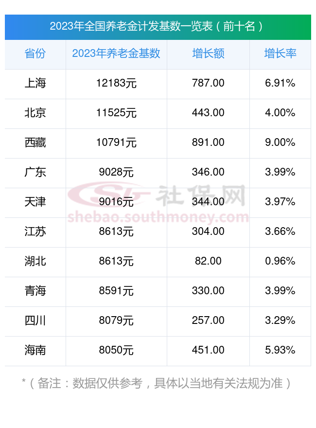 随着湖北宜昌公布计发基数,大家都知道养老金计发基数目前在全国排名前几位的情况如何呢?在这里简单分享一下: