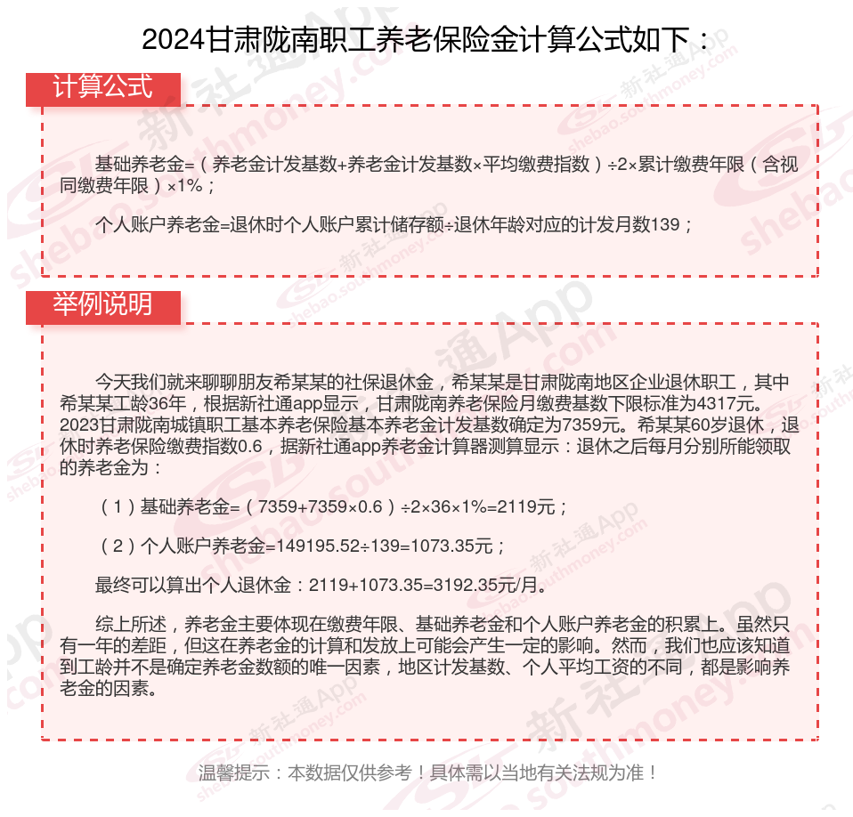 甘肃陇南退休工资养老金计算方法及公式2024年最新(举例说明)