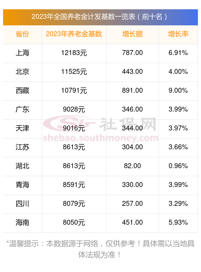 全国2023年养老金计发基数排名前十的城市,看看有你的城市吗?在这里简单分享一下: