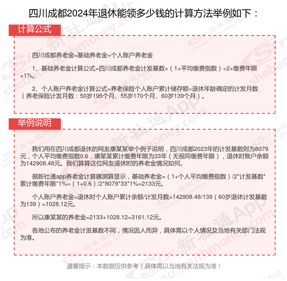 四川成都退休工资养老金计算方法及公式2024年最新(举例说明)