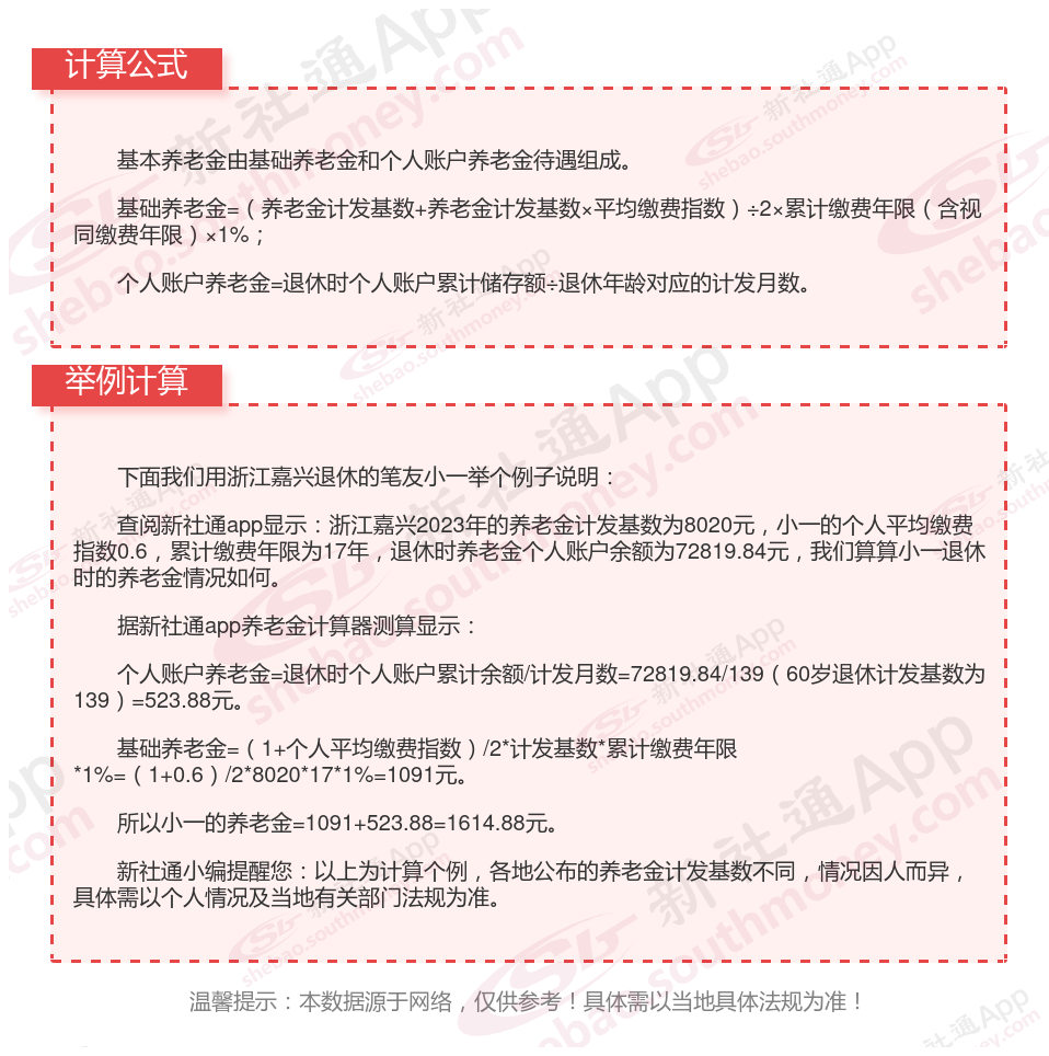 浙江嘉兴退休工资养老金计算方法及公式2024年最新(举例说明)