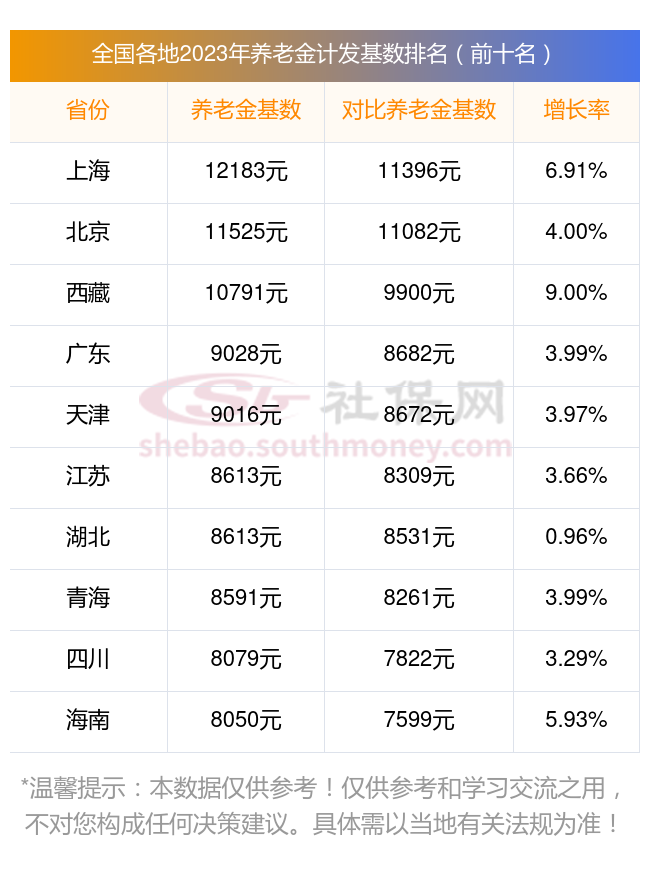 随着云南楚雄公布计发基数,大家都知道养老金计发基数目前在全国排名前几位的情况如何呢?在这里简单分享一下: