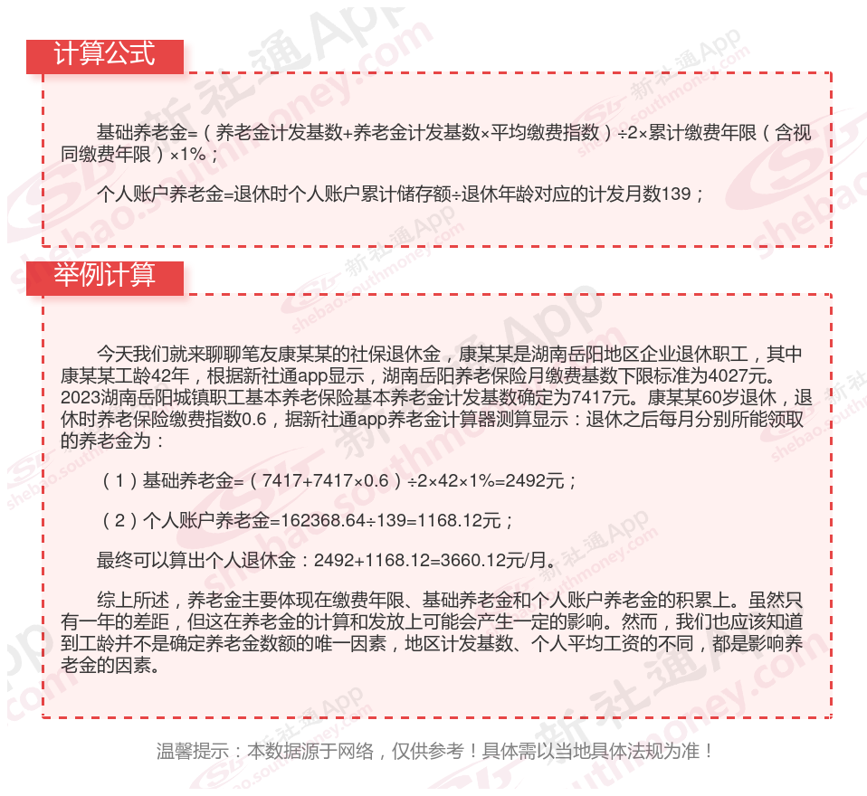 湖南岳阳退休工资养老金计算方法及公式2024年最新(举例说明)