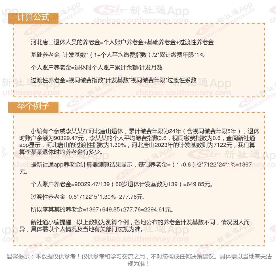 河北唐山退休工资养老金计算方法及公式2024年最新(举例说明)
