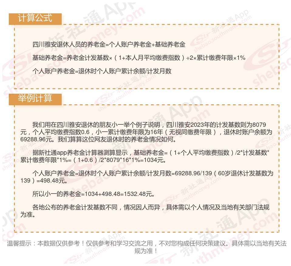 四川雅安退休工资养老金计算方法及公式2024年最新(举例说明)