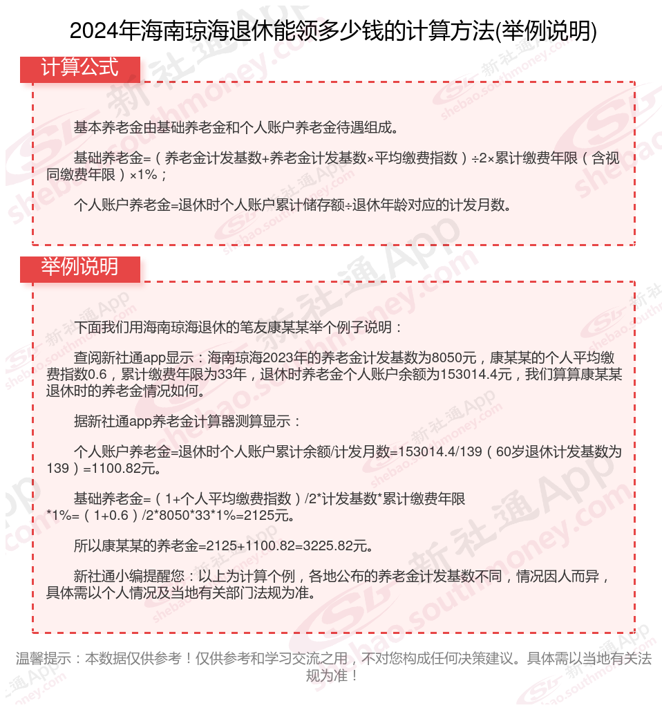 海南琼海退休工资养老金计算方法及公式2024年最新(举例说明)