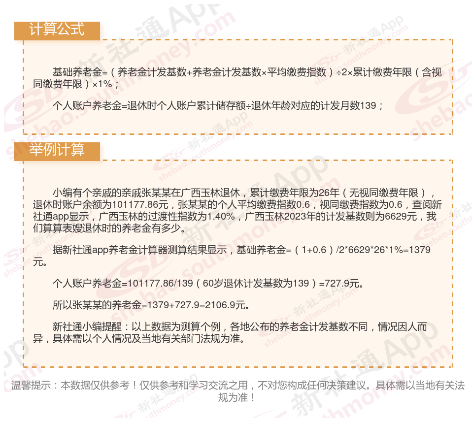 广西玉林退休工资养老金计算方法及公式2024年最新(举例说明)