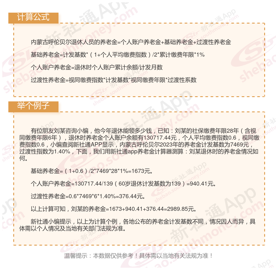 为了更加精确地了解自己未来每月能够领取的养老金金额,我们需要深入了解并掌握养老金的计算方法通过了解养老金的计算方式和影响因素,我们可以更好地规划自己的退休生活,确保生活质量不会因为退休而大幅下降。那么,社保交退休,每月能领取多少钱的养老金?下面随新社通app小编一起来看看内蒙古呼伦贝尔2024年养老金计算公式。